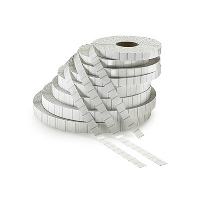 • 1″ Round White Paper Tabs. 15.5″ Roll, 30K per Roll, 5 Rolls per Case